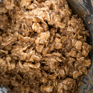 In a large bowl mix the oats, flour, baking powder, baking soda, cinnamon, and salt.